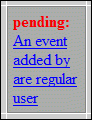 When a trusted edit or admin user (the reviewer) logs in he/she will see any pending events. Pending events are displayed with a prominent pending: before the subject, thus: