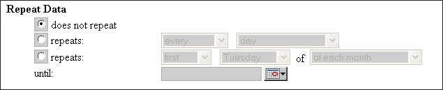 By default 'does not repeat' is selected. Choose one of the two repeat types to specify a